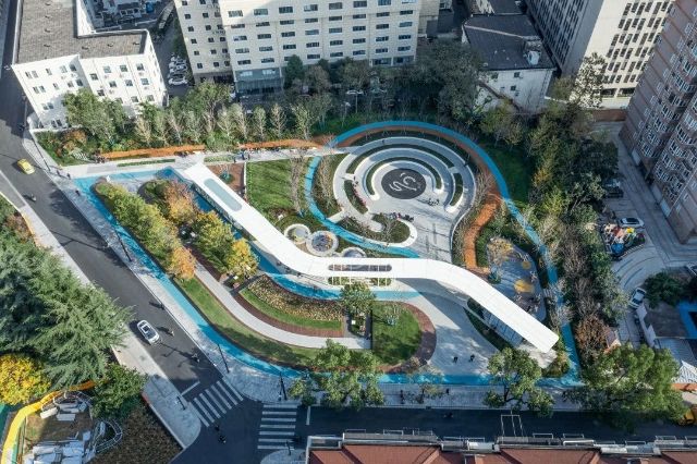 在区属公园及口袋公园建设中融入老少友好特色。比如乐汇小游园更具综合性,满足了全年龄段游客的玩乐需求,汇聚出多元、富有亲和力的城市共享空间;乐山绿地更具包容性,“仁者乐山、智者乐水”,将社交、亲子、健身、文娱等功能复合,是亲子出游好去处;日晖绿地更具自然性,绿地留住天然的“城市森林”,“零碳环构筑物”穿林而过,仿佛置身天然花园之中。