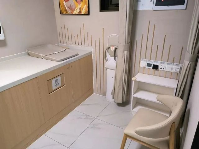 此外,目前9个区属公园中有7个公园配备自助母婴室,如徐家汇公园母婴室内部除了专用尿布台以外,还配置母婴专用哺乳椅、置物台等,洗手台配备伸拉式水龙头及热水,一旁的饮用水贴心地配备了45℃冲奶水温,一定程度上为市民游客提供了便利。另2家公园也已纳入2024-2025年公园改造提升计划,预计“十四五”期间实现区属公园母婴室全覆盖。