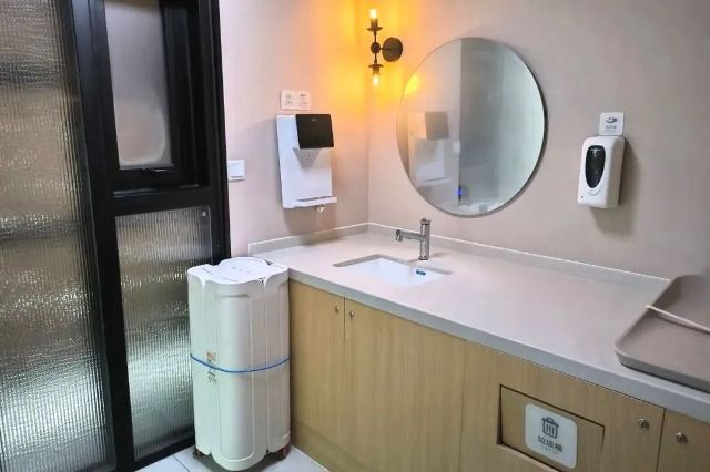 在公园绿地改造中,考虑适老适幼服务功能,设置第三卫生间,提高公厕人性化、精细化,配齐儿童专用如厕设施和洗手台;安装无障碍扶手,方便老年人起身和坐下;消除台阶高差,便于轮椅进出,让一老一小如厕更便捷。