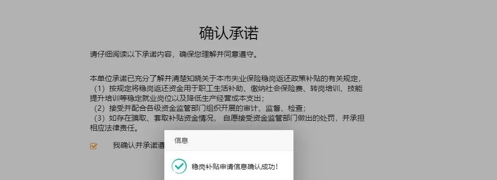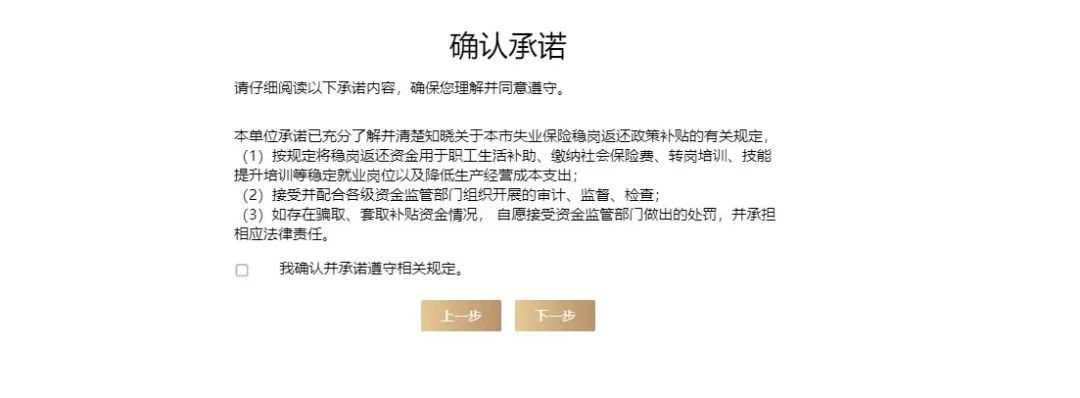 4、确认无误,点击下一步,阅读相关承诺内容。承诺内容勾选后,点击下一步,保存后进行提交。(意愿只需确认一次,未确认的在政策实施期内均能确认。)