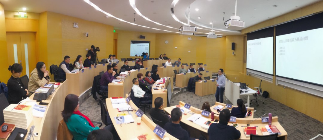 学院教学设施完备,支持丰富多元的授课方式。图为高管学员和同学们分享企业管理经验。