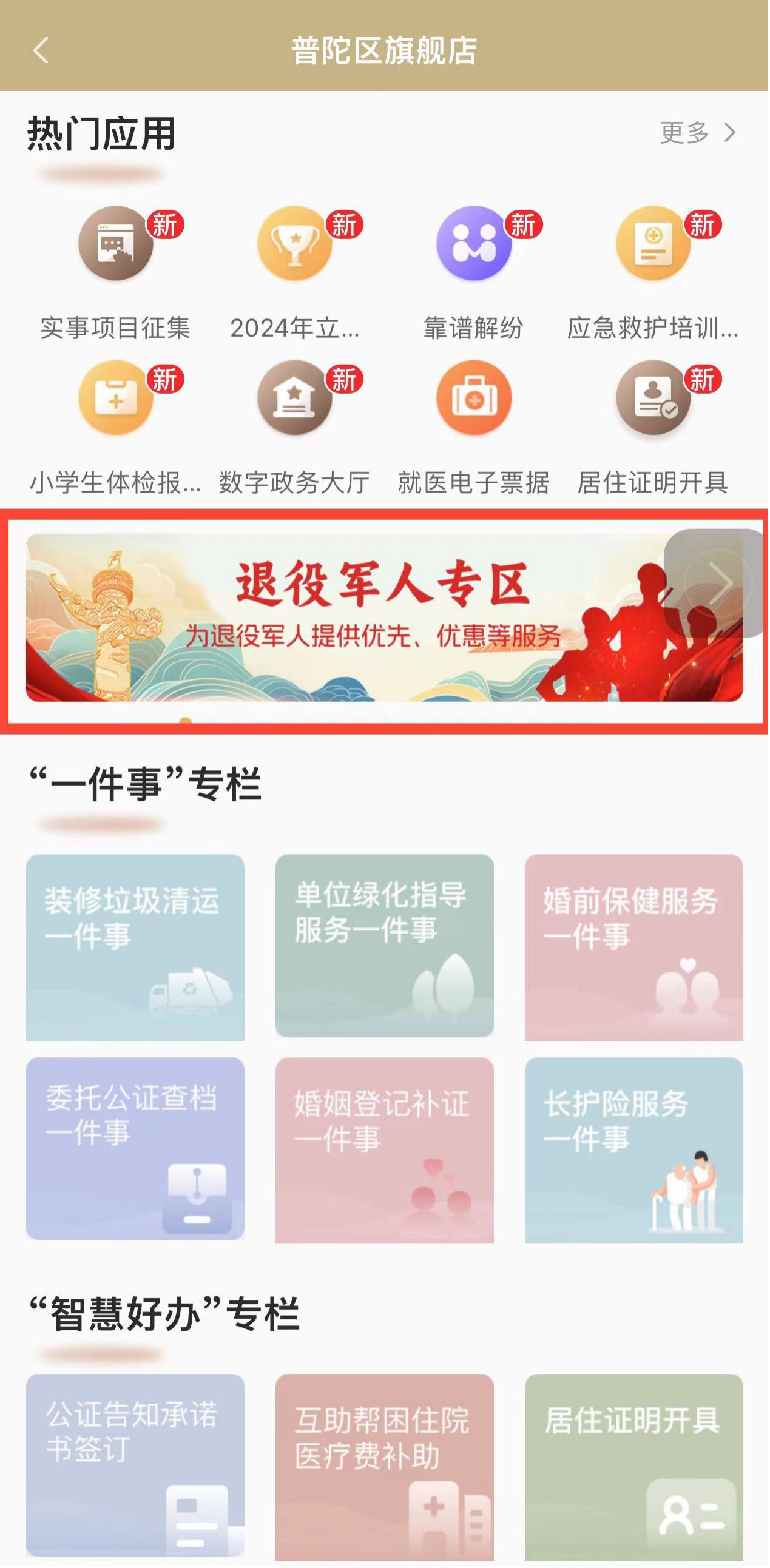 “随申办”普陀旗舰店“退役军人专区”上线啦! 2024-08-28 来源:普陀区人民政府