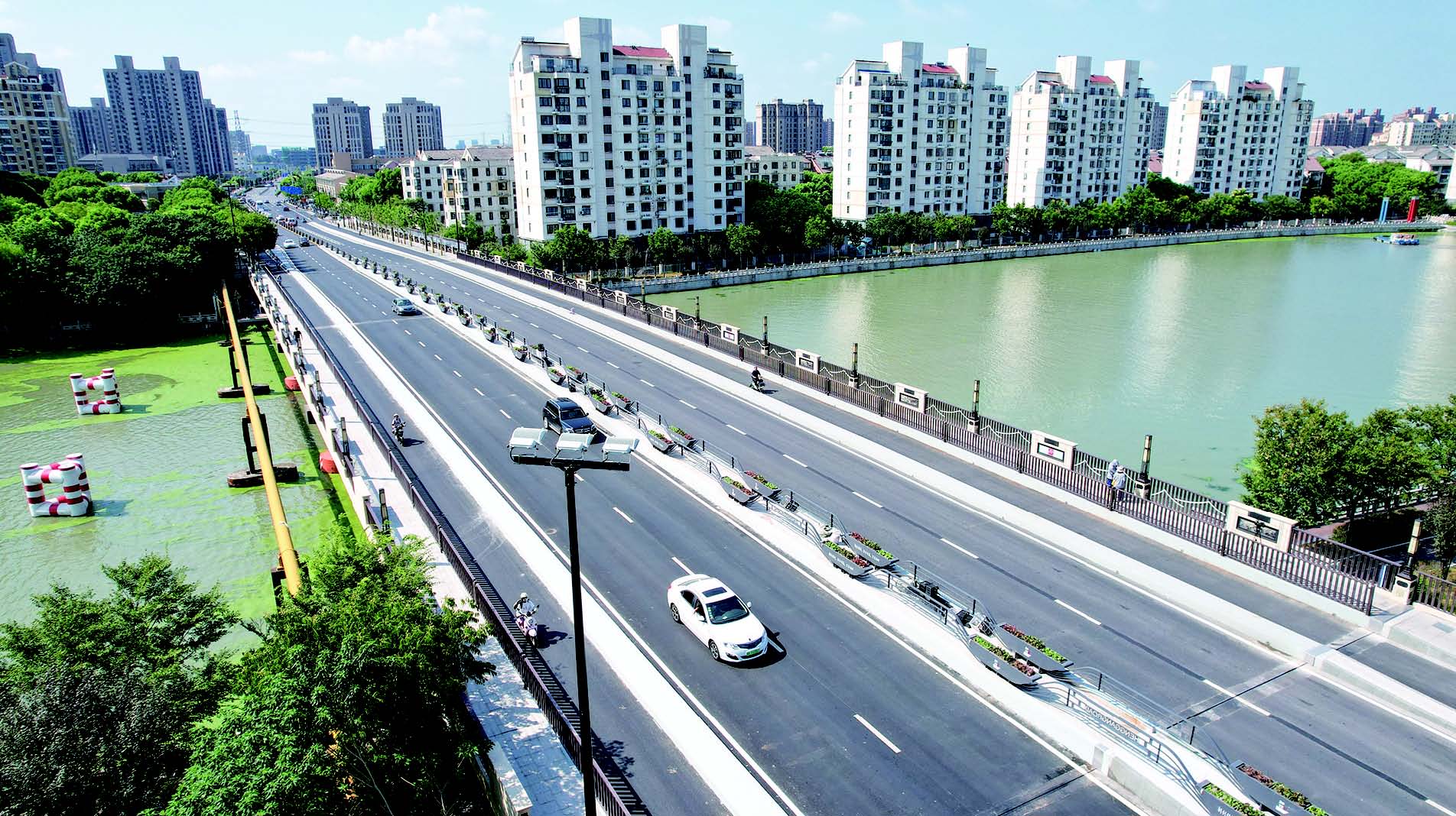 作为泗泾镇南北交通“大动脉”,横港路泗泾塘桥于8月25日通车(见上图),打通原本“宽路窄桥”的交通瓶颈,大大缓解了镇内的交通压力。