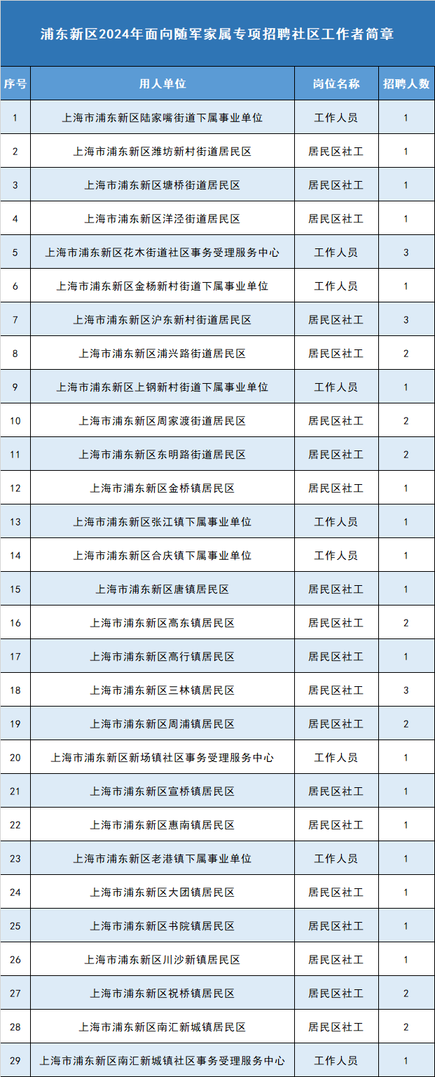 浦东新区2024年面向随军家属专项招聘社区工作者公告
