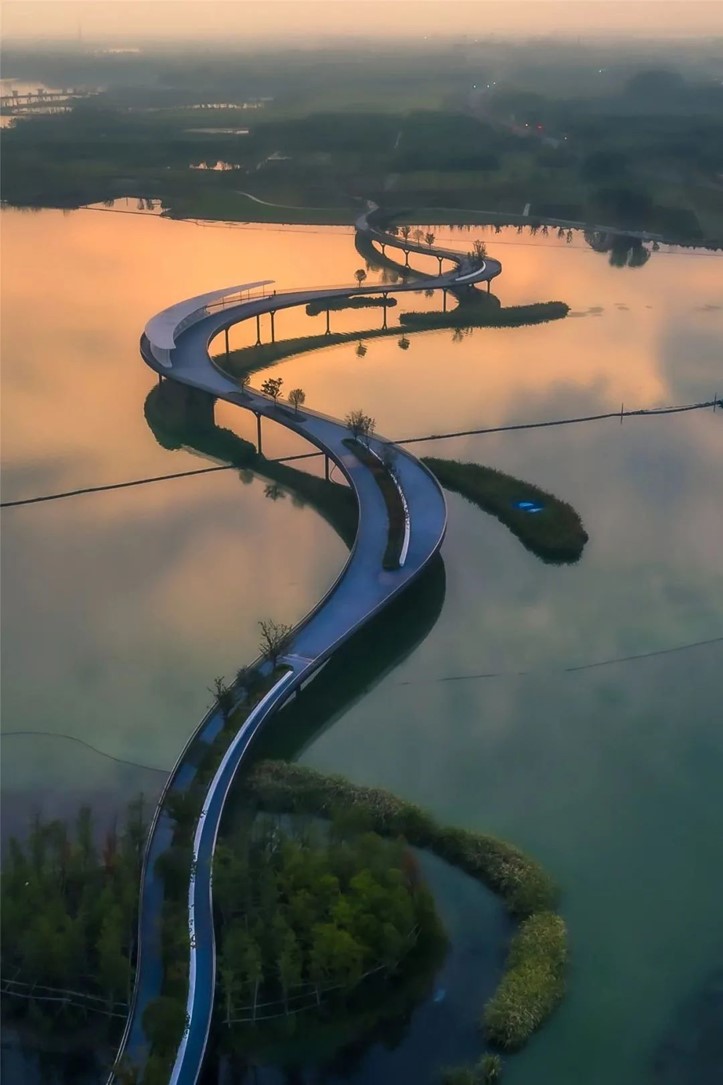 横跨沪苏两地,静卧于元荡湖之上的元荡慢行桥,是青浦的网红打卡点。