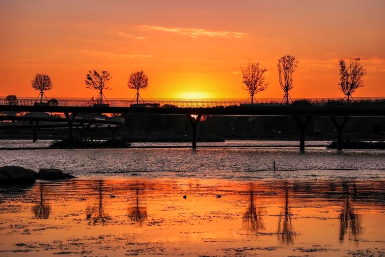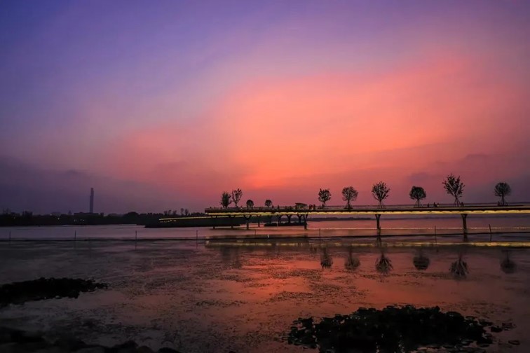 漫步或骑行于此,开阔的湖面在眼前呈现。水浪轻轻拍打着堤岸,绿植随风摇摆。到了傍晚,天边红霞绚丽灿烂,湖光潋滟,暮色轻柔,一幅水清、岸绿、景美的水岸画卷,沿着步道徐徐展开……