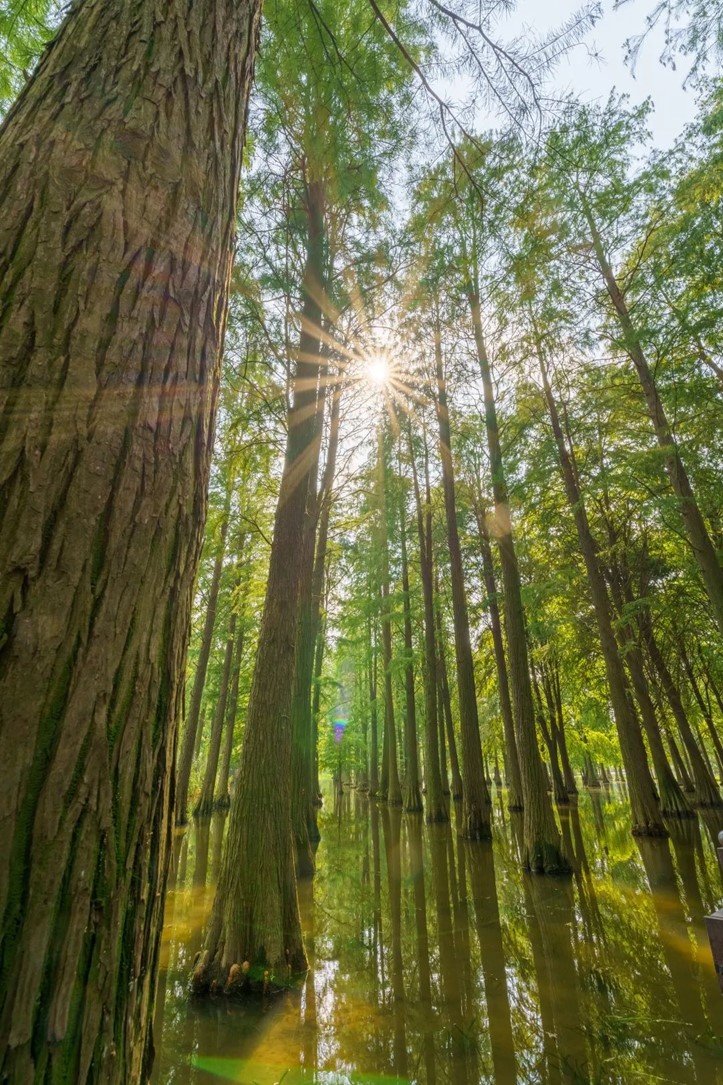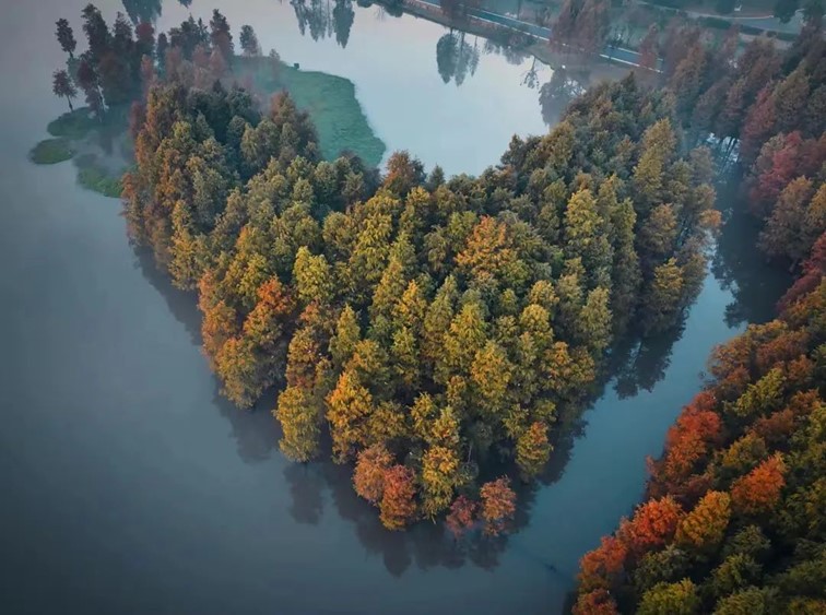 来大莲湖赏秋,推荐去青西郊野公园的“水上森林”打卡!数千棵被誉为植物界“大熊猫”的池杉整齐排列,高耸繁茂,在碧波映衬下,仿若与世隔绝的人间仙境,每一次驻足都令人惊艳。