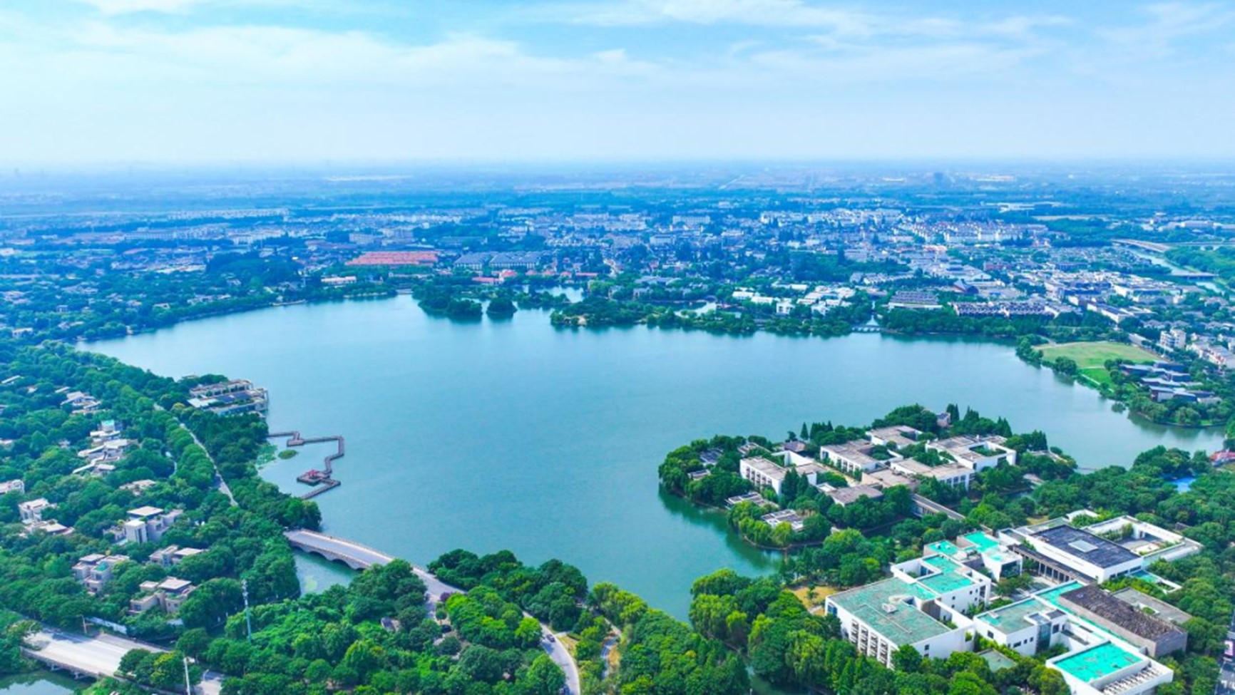 大淀湖位于青浦西部的朱家角镇,这座小巧的圆形湖泊,岸线周长约3公里,湖底平坦、水质优良,沿湖绿化景观宜人,被誉为朱家角古镇旁的一块“绿宝石”。