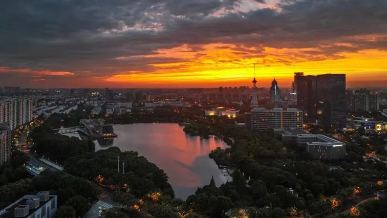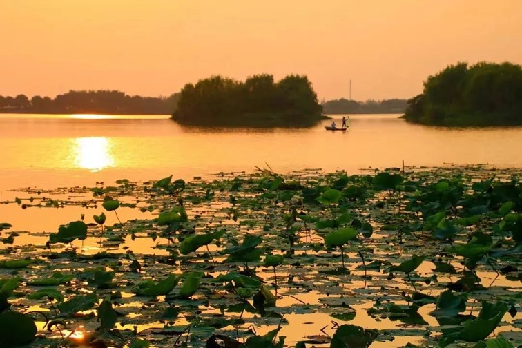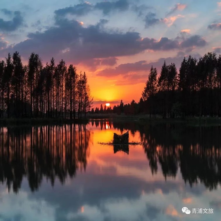 每当红日西沉,余晖透过云层,把元荡湖映得金灿灿的。那一瞬间,仿佛整个世界都变成了太阳的宫殿。