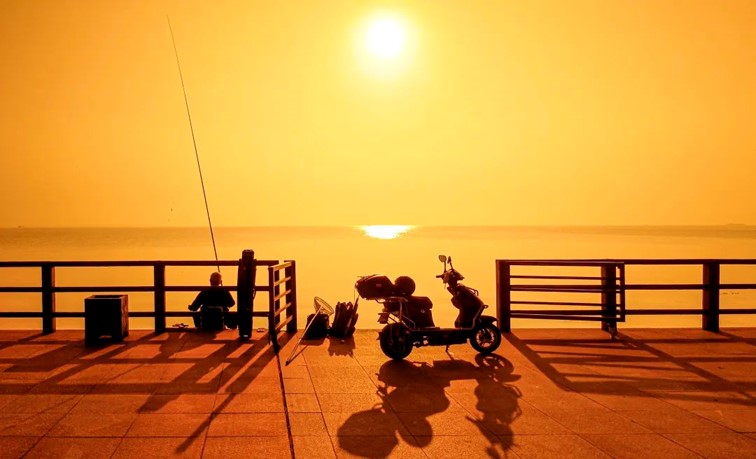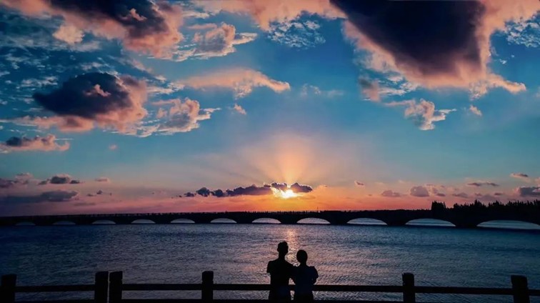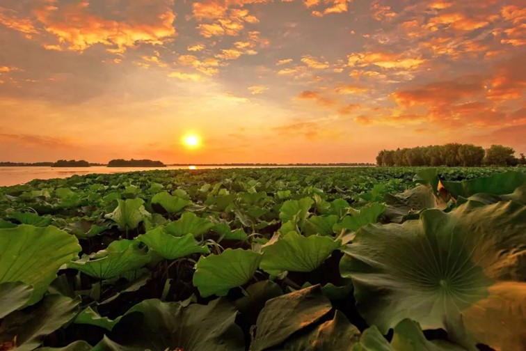 想在这里出片简直太容易了,随手一拍,便能够占领朋友圈点赞的高地。这儿的落日没有任何遮挡,水天一线。看着太阳缓缓隐入湖中,在水面上晕开一褶一褶的橙红……