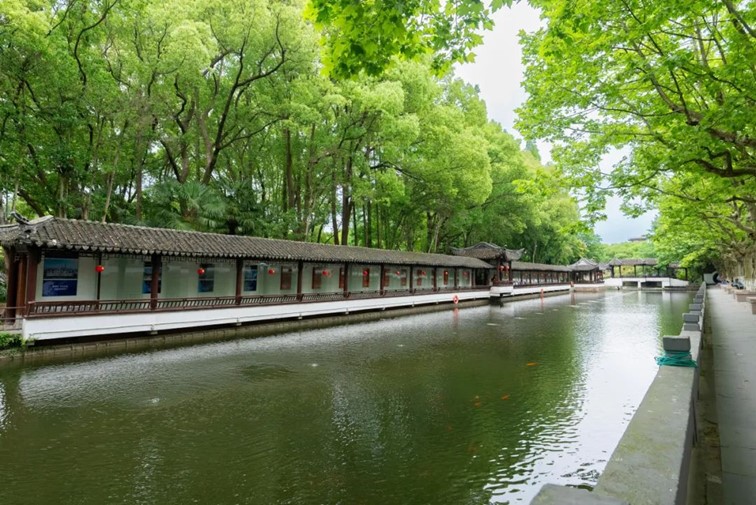 曲水流觞与粉墙黛瓦相映成趣,文化展览与青绿风光相辅相成。夏秋之际,青溪园半池莲叶半池水,特别适合闲暇之时来此漫步。