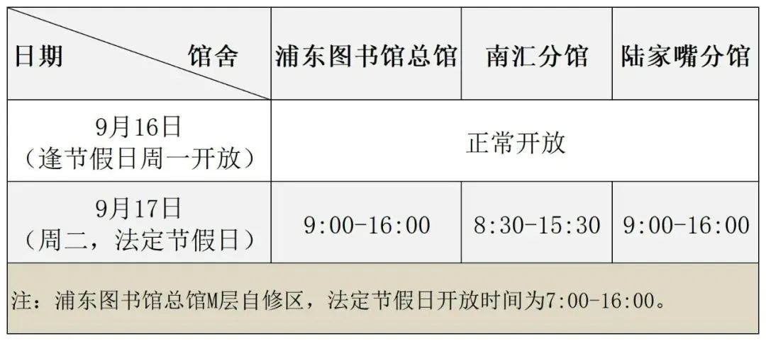 2024年中秋节放假期间,浦东图书馆(包含南汇分馆、陆家嘴分馆)开放时间来啦。
