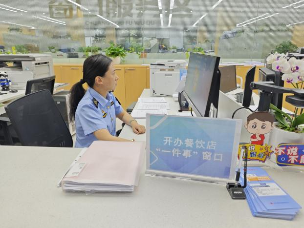 普陀区政务服务中心办事大厅特别设置了开办餐饮店“一件事”服务专窗,结合值班长制度,提供多元化、多渠道帮办服务,为餐饮企业提供面对面指导,同时力求做好线下服务与审批系统的高效衔接。