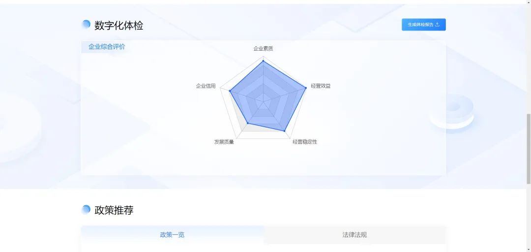 进入“企业数字化体检专区”一键生成企业专属的“健康体检报告”
