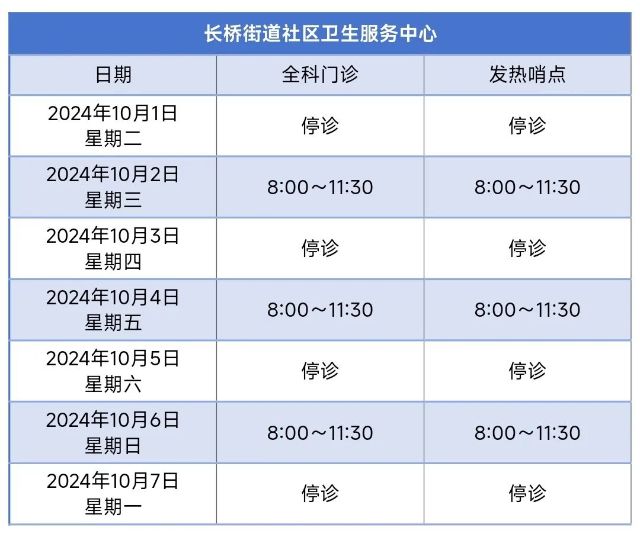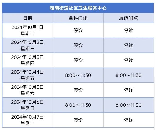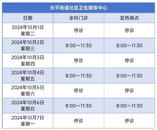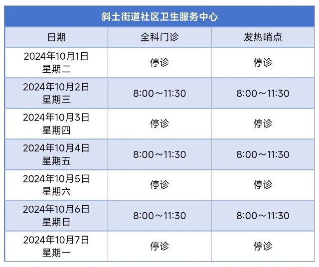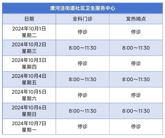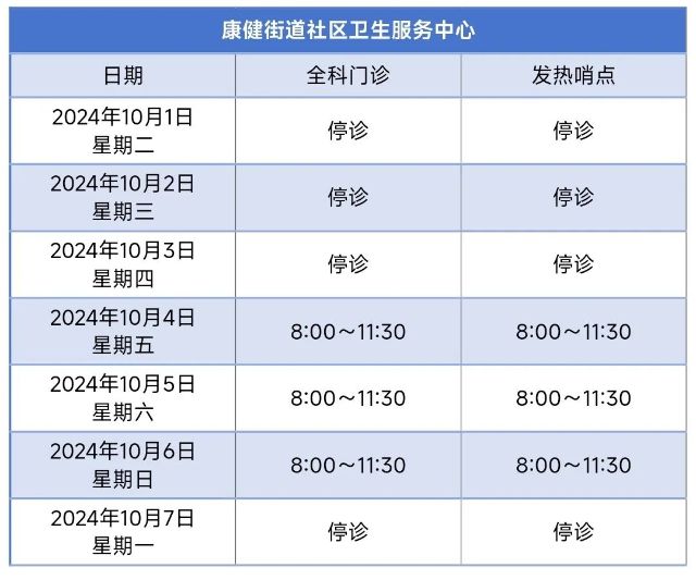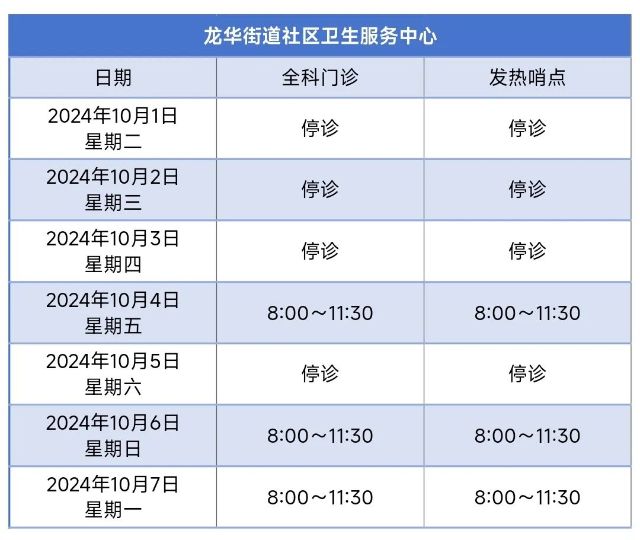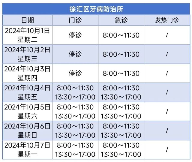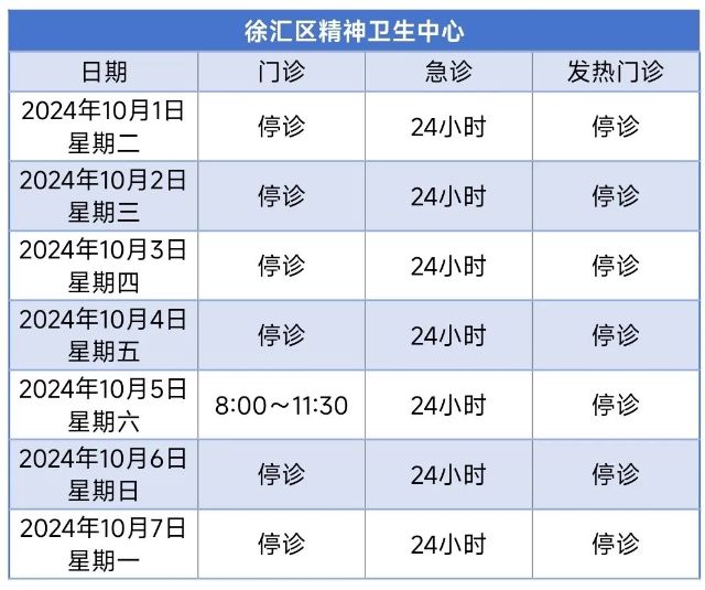 10月1日至10月7日期间徐汇区妇幼保健所门急诊停诊。