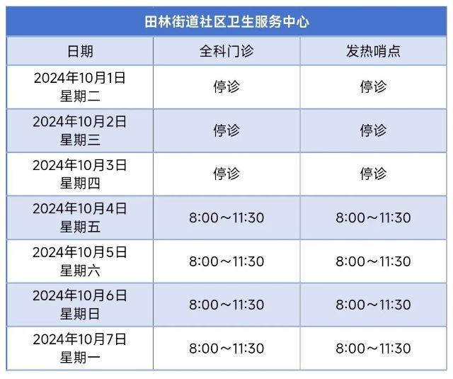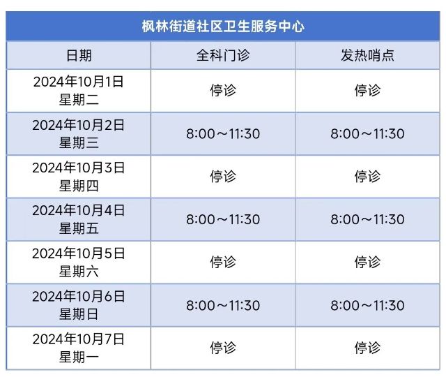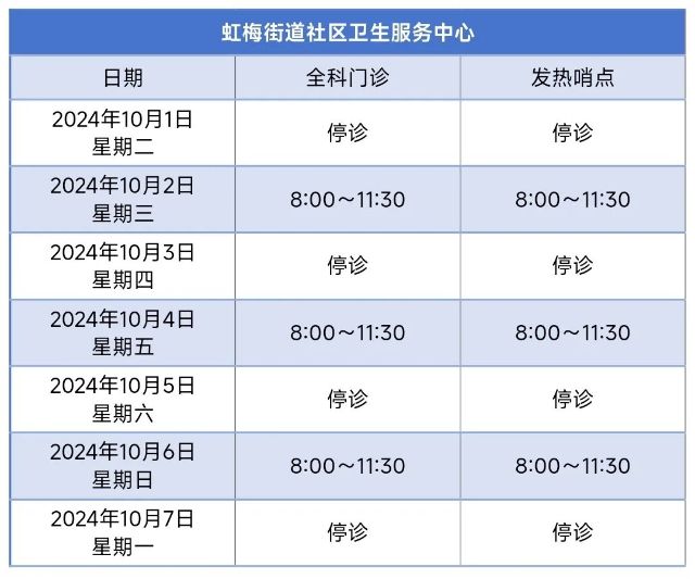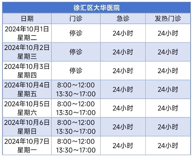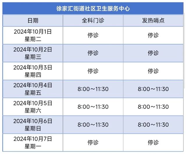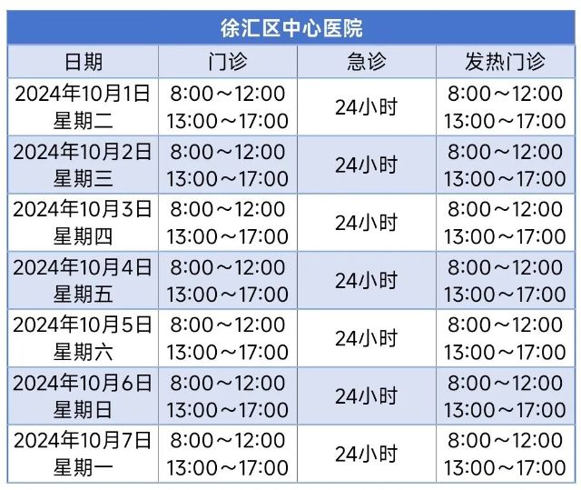 国庆节即将到来!在七天长假里,徐汇区属医疗机构的门诊都是怎么安排的?现将相关信息整理汇总,赶紧收藏一下,有备无患!