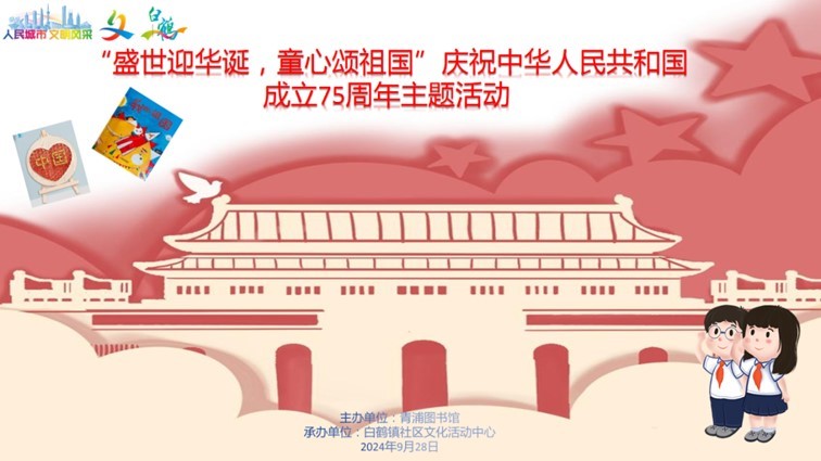 为热烈庆祝中华人民共和国成立75周年,深入践行人民城市重要理念,厚植爱党爱国爱社会主义情怀,助力建设习近平文化思想最佳实践地,青浦区组织各类新时代文明实践阵地开展一系列主题活动,营造浓厚的节日氛围,让我们一起来看看活动预告!