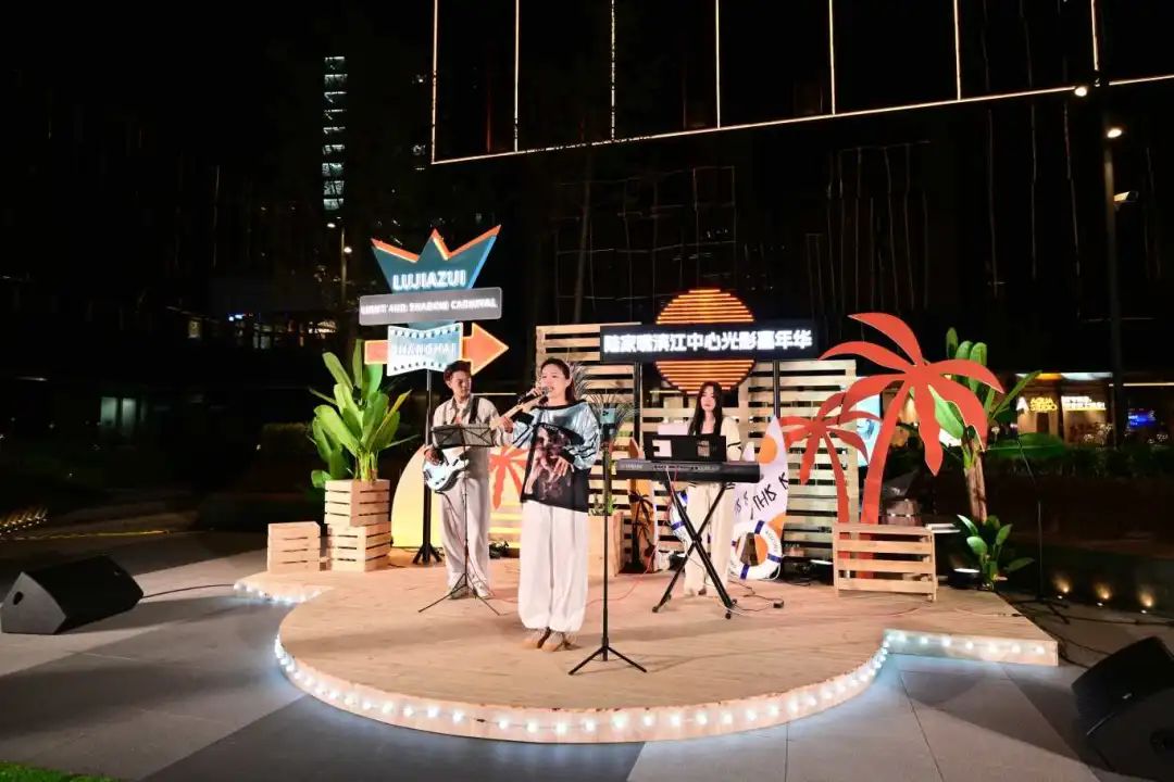 在园区企业阅文集团从事技术工作的曹子豪是园区活动的“常客”,尤克里里课、视频剪辑课每周一次,这次的嘉年华活动当然也要来逛一逛。“现在气温刚好,下班路过哪怕坐在这里什么都不做,吹着晚风看一会儿露天电影,听几首乐队弹唱,让大脑‘喘口气’,好像一次‘能量快充’。”曹子豪说。