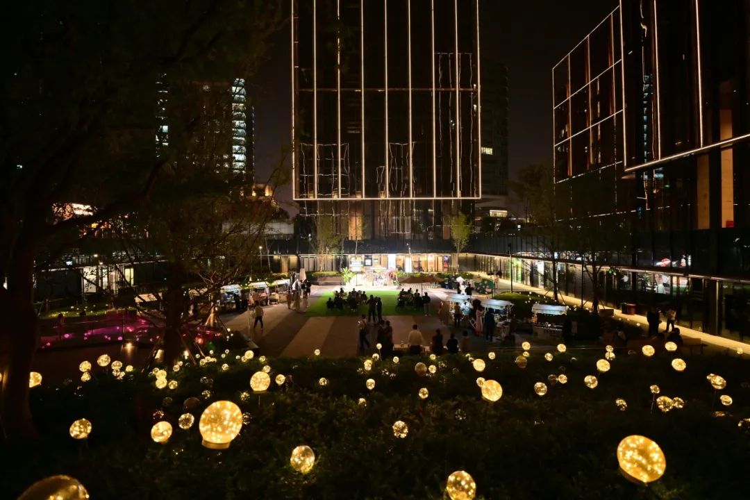 每当夜幕降临,陆家嘴滨江中心的下沉式广场被星星点点的灯饰点亮,“光影市集”活动闪亮登场,丰富白领职工生活。