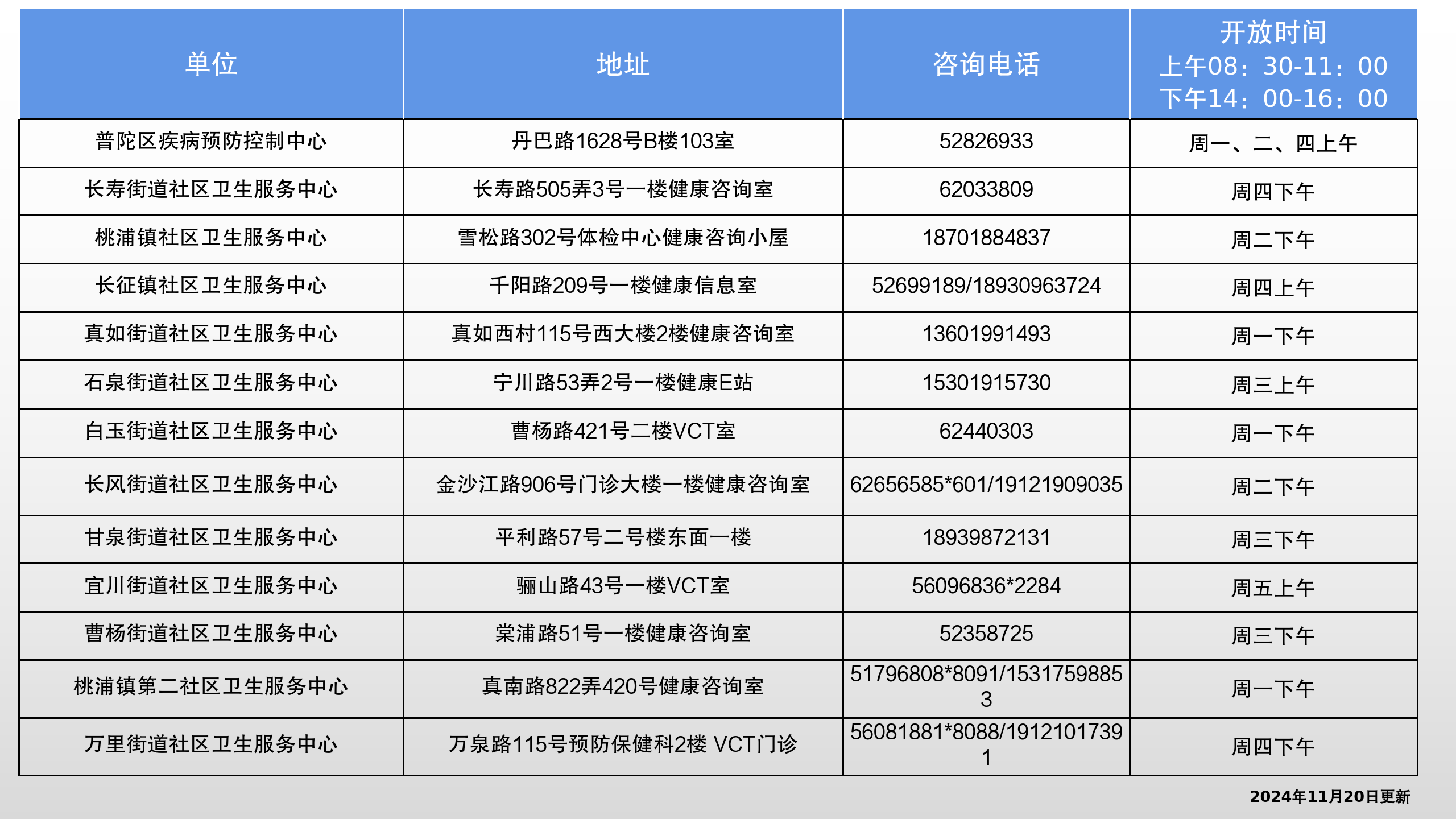 普陀区检测咨询门诊(VCT)信息