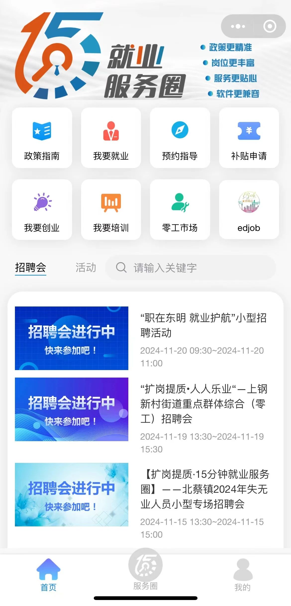 在站点建设的同时,浦东新区通过推出“基层治理数字化平台”的“15分钟就业服务圈”小程序,用数字化手段创新服务模式,实现用户位置定位,以数据地图形式呈现“服务圈”内招聘岗位、创业孵化器等信息,精准定位指引就业扶持政策,并支持社交网络岗位信息快速分享,实现供给端与需求端资源互通共享,织密“立体化”就业网络。