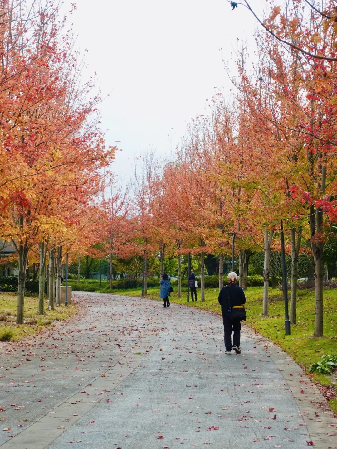 从地铁13号线真北路站出发,步行就可以到达云岭公园——上海市区第一波红枫就在这里,是最近的热门打卡地。公园大道两旁树木,披上了金黄和橙红的着装,叶片在风中摇曳,暖暖的景色让人流连。