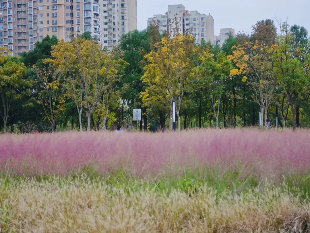 苏州河沿岸的大片粉黛乱子草已经变成粉色花海了,轻盈的粉色花穗像一层层柔软的云雾,铺展在大地上,其中还有成片的芦苇丛,呈现一份独属于这个季节的浪漫。