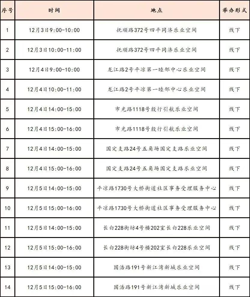 活动地点:靠普职家·桃浦东部党群服务中心社区就业服务站(真南路822弄450号)