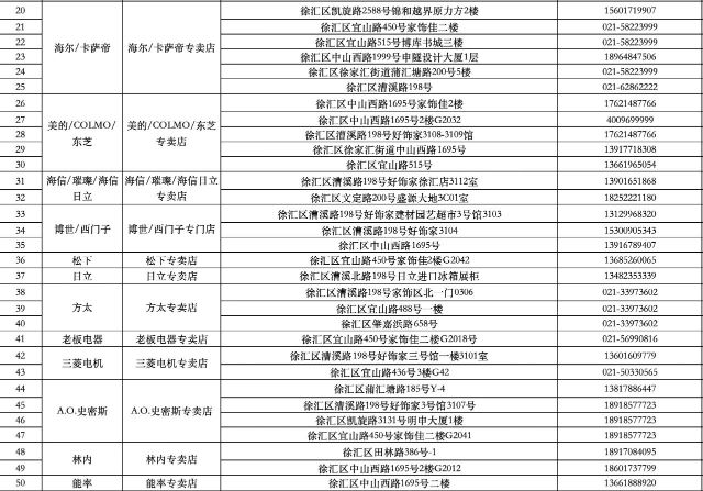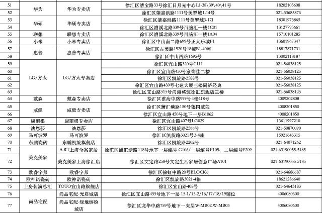 以下为徐汇区参与国家和市级补贴的商户名单,欢迎消费者前往门店咨询选购!