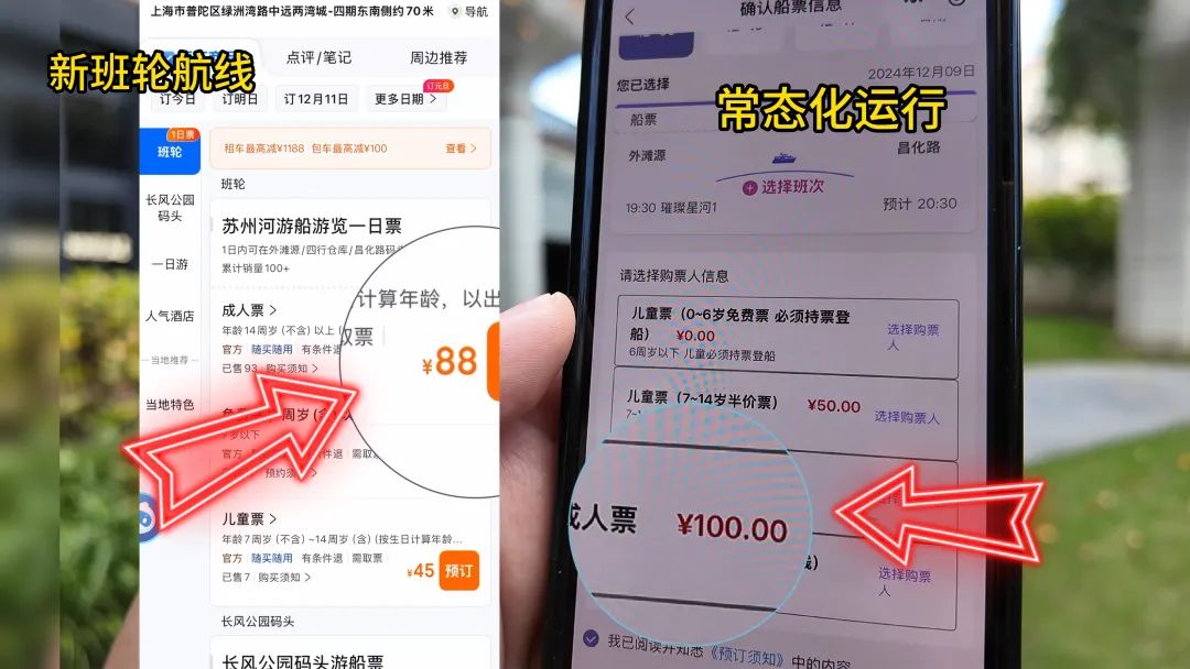 1、班轮一日票与常规船票购买渠道有所不同。班轮一日票当前须通过携程平台搜索“苏州河游船”选购或在三大码头线下购票,而常规船票则可以在“悠游苏州河”小程序购买。