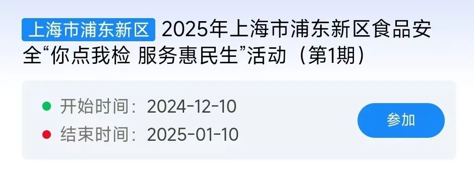 2.定位在浦东新区的居民朋友选择【2025年上海市浦东新区食品安全“你点我检服务惠民生”活动(第1期)】