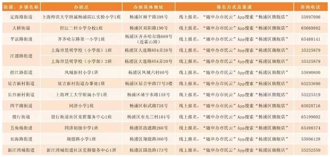 2025年上海市小学生爱心寒托班杨浦各办班点