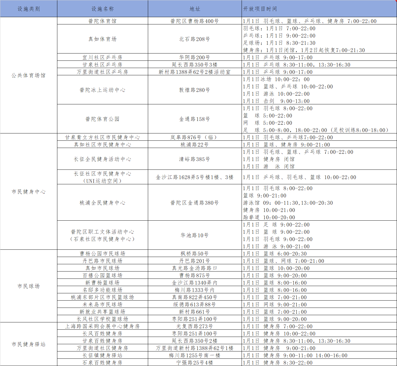 元旦就要来啦!小编为大家带来了普陀区公共体育设施开放信息!快来看看你身边开放的体育场所,一起运动起来吧!去运动前记得关注场馆实际开放信息,部分场馆需要提前预约哦~