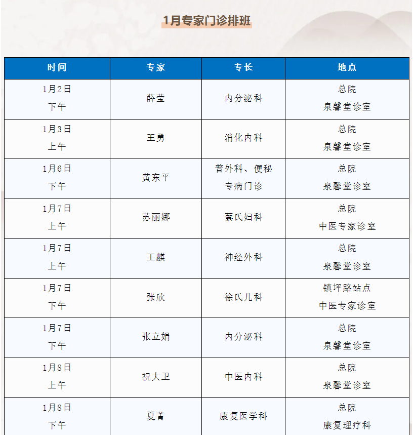 “家门口”就能看名医!普陀2025年1月专家门诊安排来啦 2025-01-02 来源:普陀区人民政府