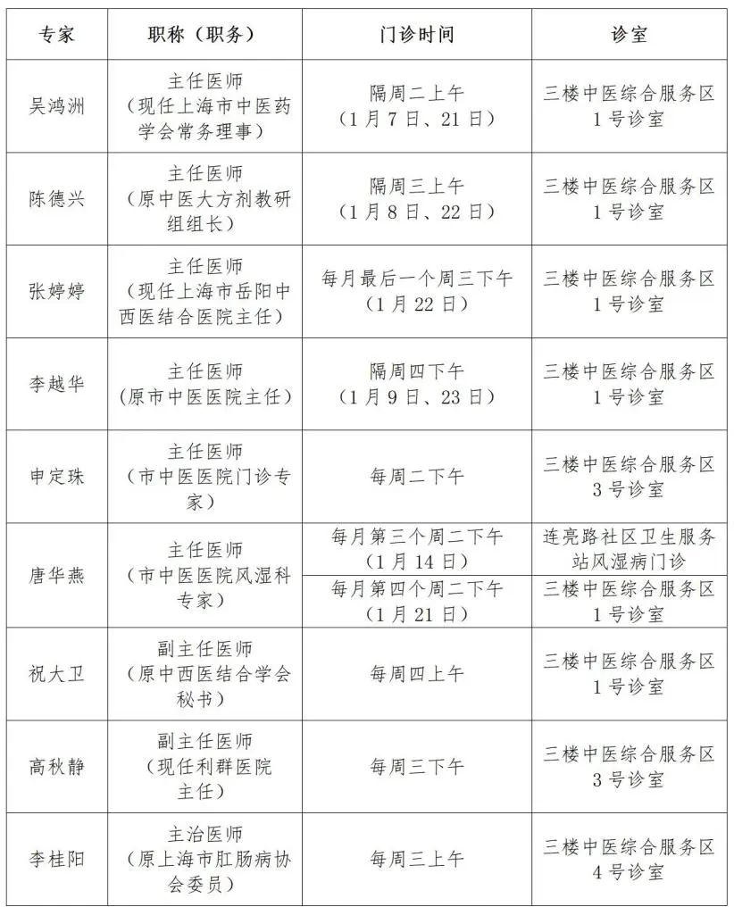 为了让桃浦地区居民享受优质的中医及康复医疗资源,桃浦镇社区卫生服务中心特邀请龙华医院、普陀区中医医院等知名中医及康复专家来我中心开设中医及康复专家门诊。现将12月份的中医及康复专家门诊向各位患者公示,如有就诊需求可通过电话进行咨询和预约(66260808*8568)。
