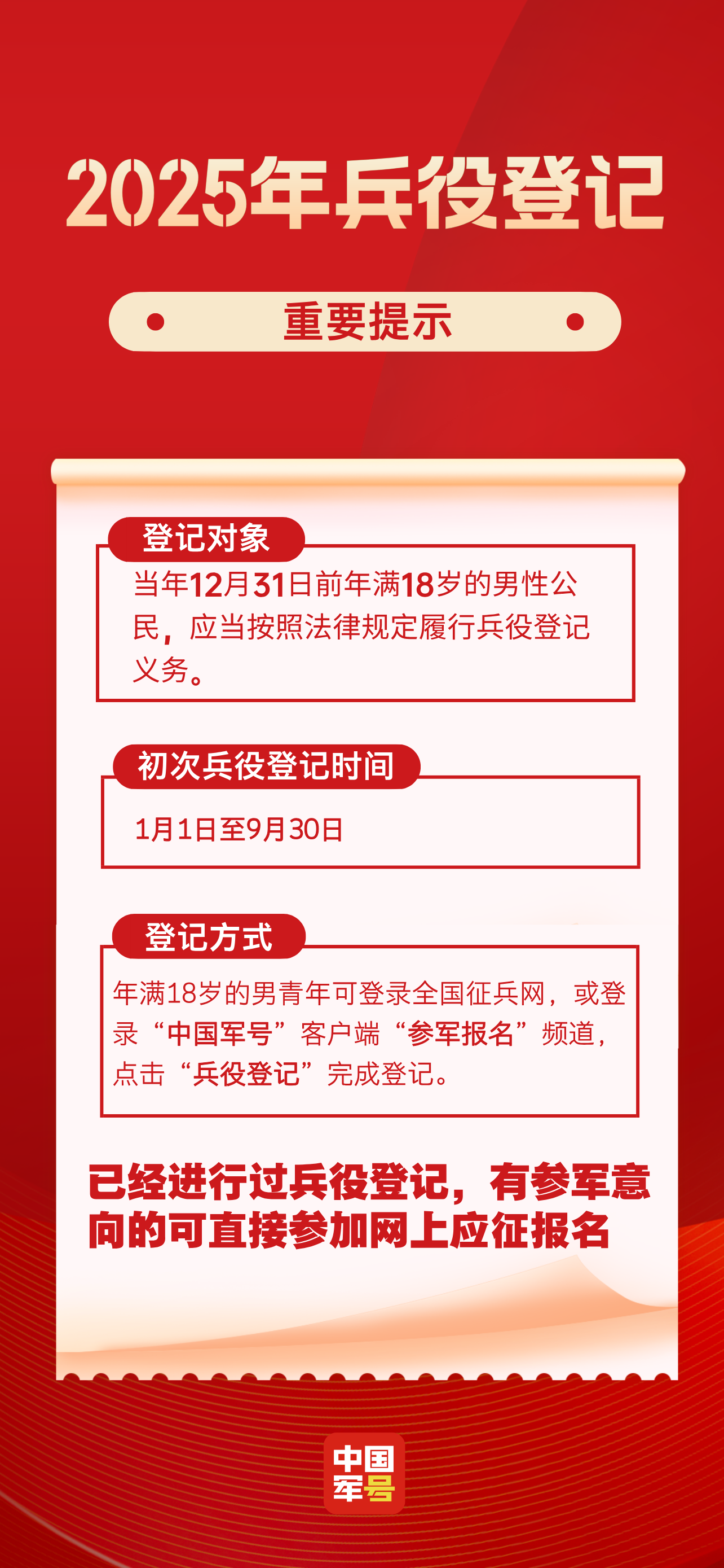 普陀居民朋友们请注意!2025年的兵役登记工作正式开始啦!