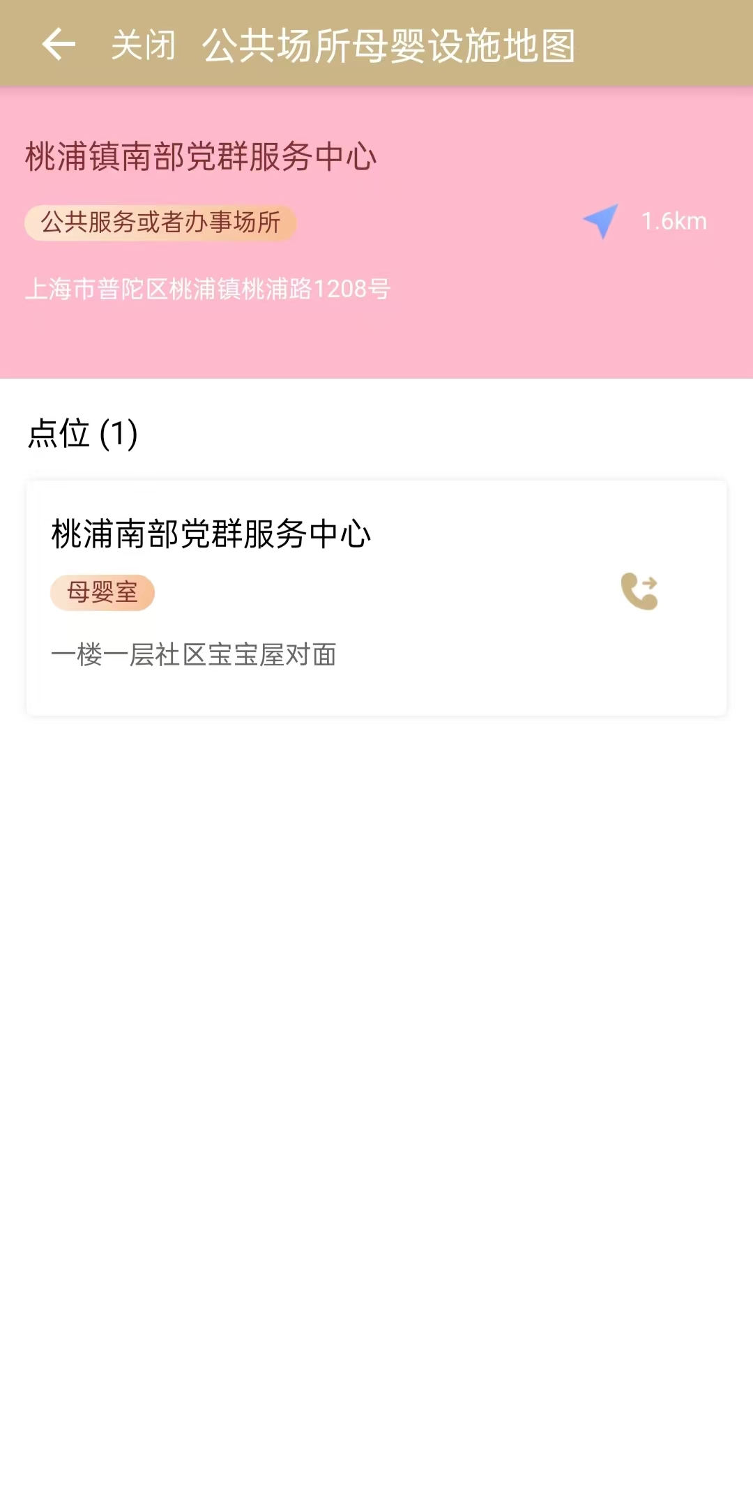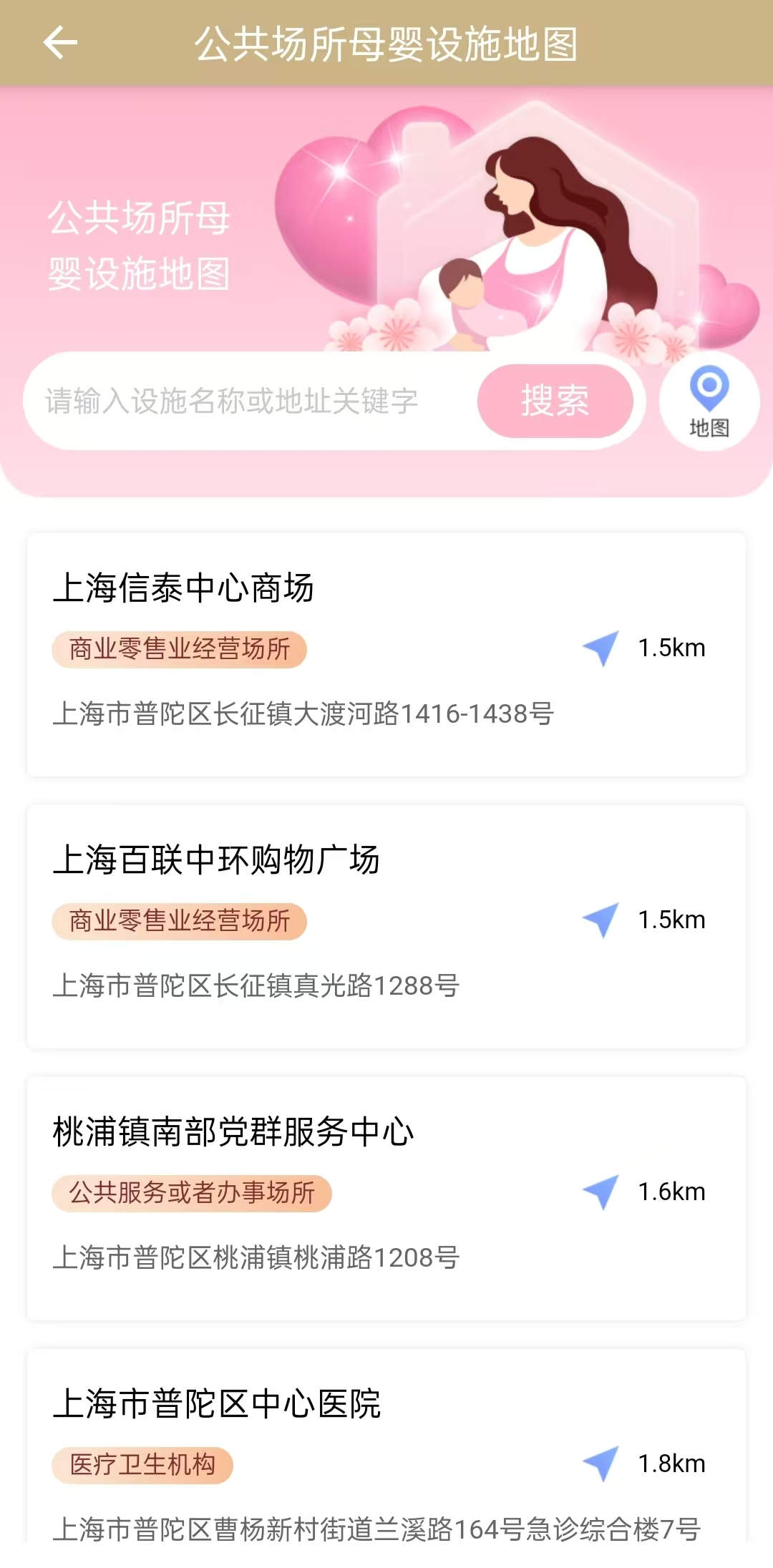 按照提示打开定位后,即可查看位于普陀区的公共场所母婴设施~