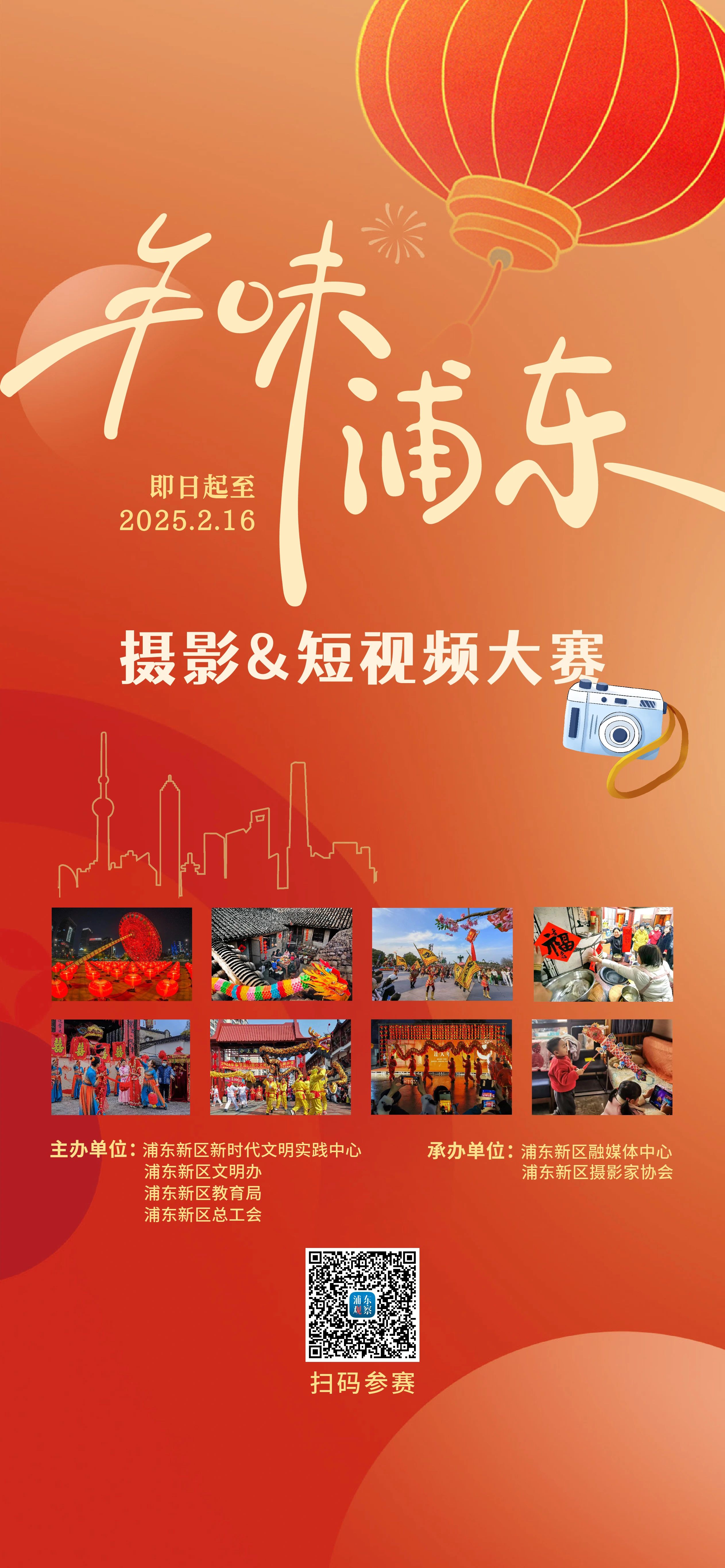 秀出你的“年味”!第二届“年味浦东”摄影&短视频大赛等你来参加 2025-01-21 来源:浦东新区人民政府