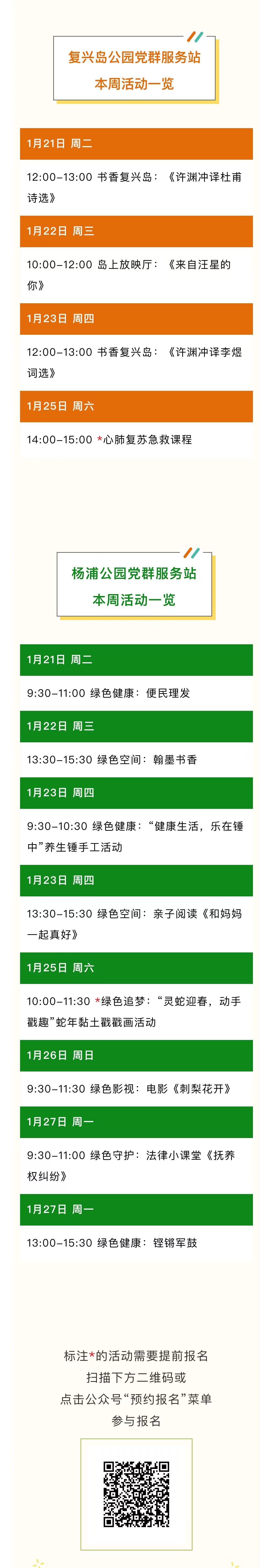 节前最后一周,我们一起欢乐预热,欢迎来杨浦两个公园党群服务站参加精彩活动。
