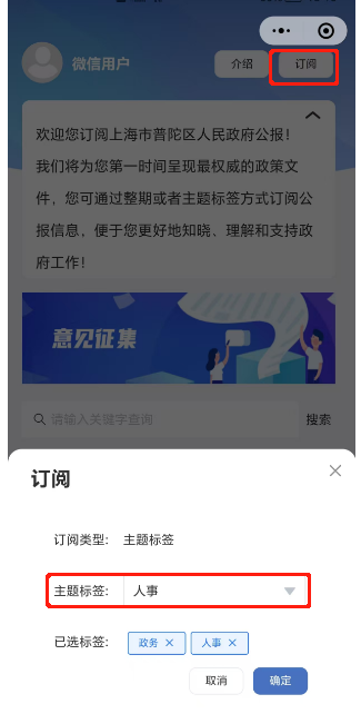 “普陀区人民政府公报”微信小程序怎么关注呢?