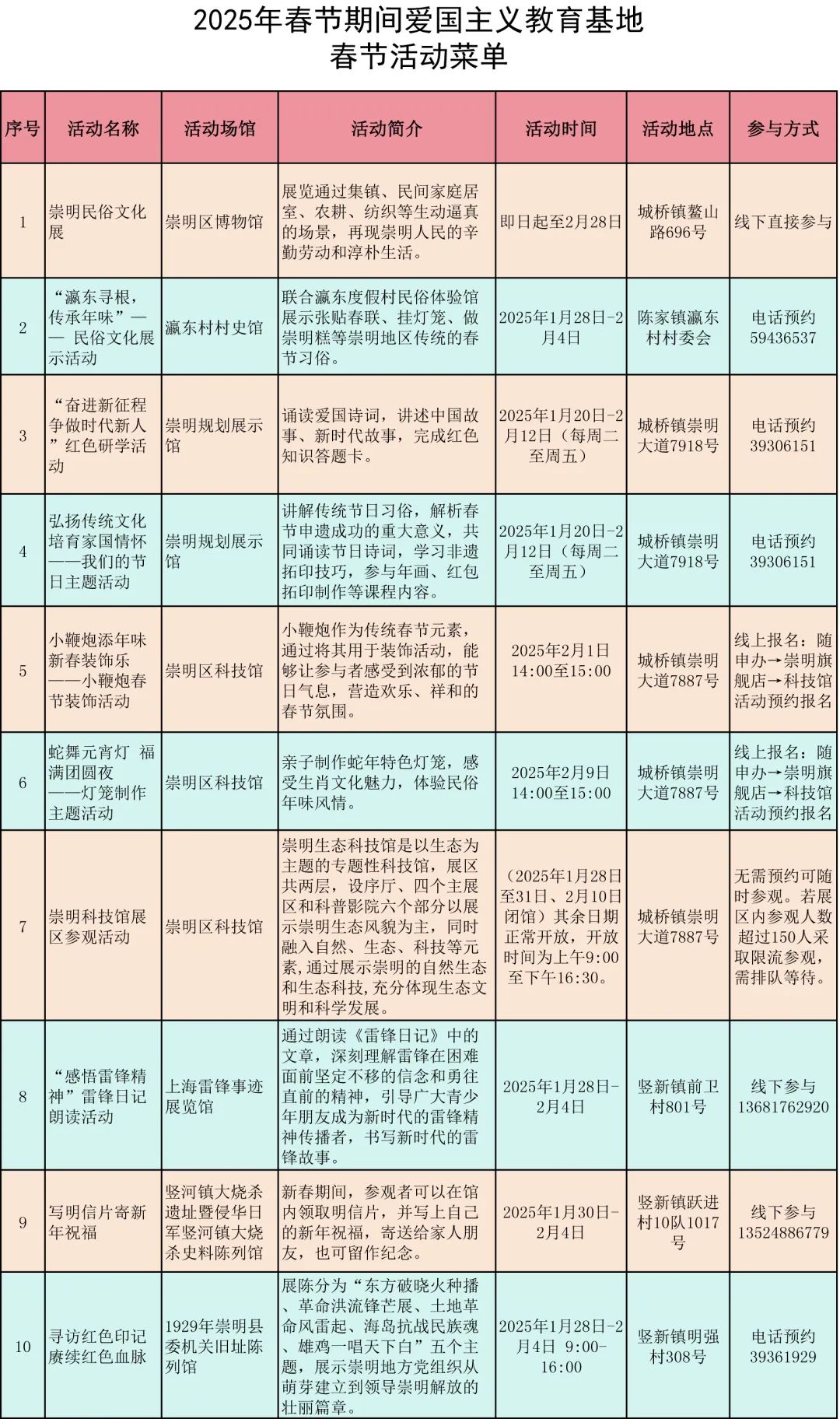 今年是春节被列入联合国教科文组织《人类非物质文化遗产代表作名录》后的首个“非遗版春节”。为进一步丰富节日期间群众文化生活,弘扬中华优秀传统文化,崇明区委宣传部发挥爱国主义教育基地宣传教育作用,指导全区各级爱国主义教育基地推出春节主题活动,发布新春特色活动和主题展览,为广大市民游客奉上丰富精彩的节日“文化大餐”。