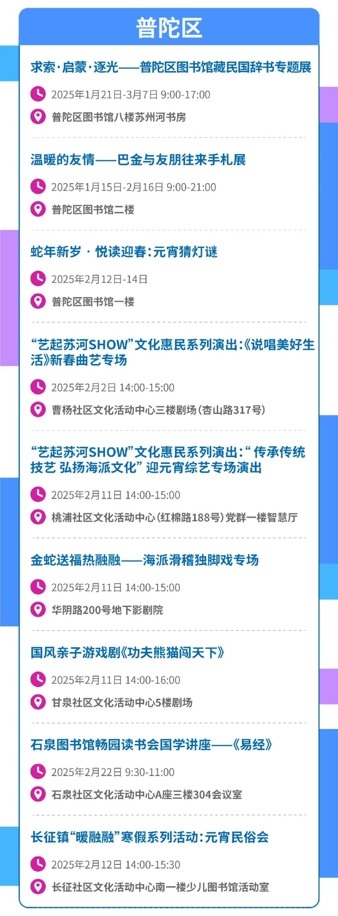 上海市民文化节结合城市重要节展赛会活动,创造全年龄喜爱的美好生活新样式、新场景,面向市民开展数千场形式多样、内容丰富的城市优质美育活动,现向大家推荐二月重点活动,让我们在这座城市里共同开启一场与“美”的双向奔赴!普陀区有哪些精彩活动?一起往下看看吧!