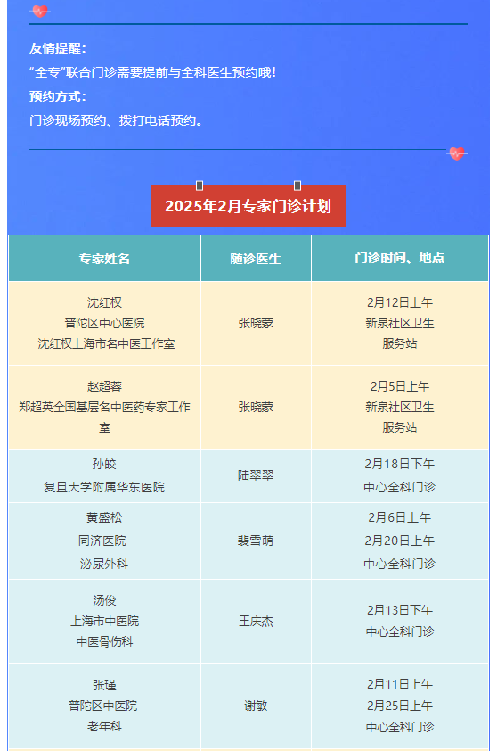 “家门口”就能看名医!普陀2025年2月专家门诊安排来啦 2025-02-06 来源:普陀区人民政府