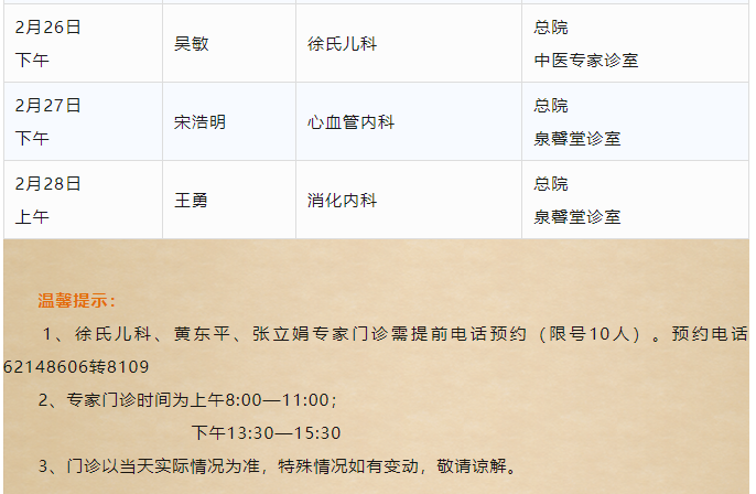 具体专家门诊安排,以当日专家出诊情况为准,为避免跑空,建议您提前电话咨询确认,咨询电话:32270165*8001。