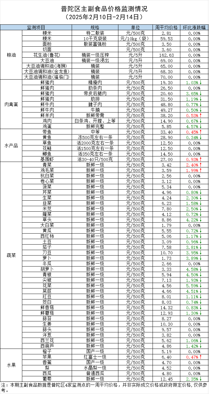 普陀区主副食品价格监测情况 (2025年2月14日)