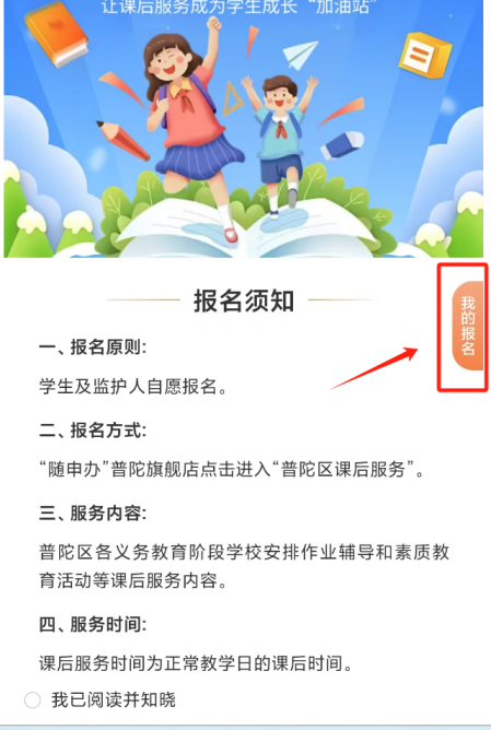 各位家长及同学们,新学期开始啦。“随申办”普陀区旗舰店课后服务悄悄改版更新啦!那么全新改版的课后服务应该怎么报名呢?别着急,让我们接着往下看!