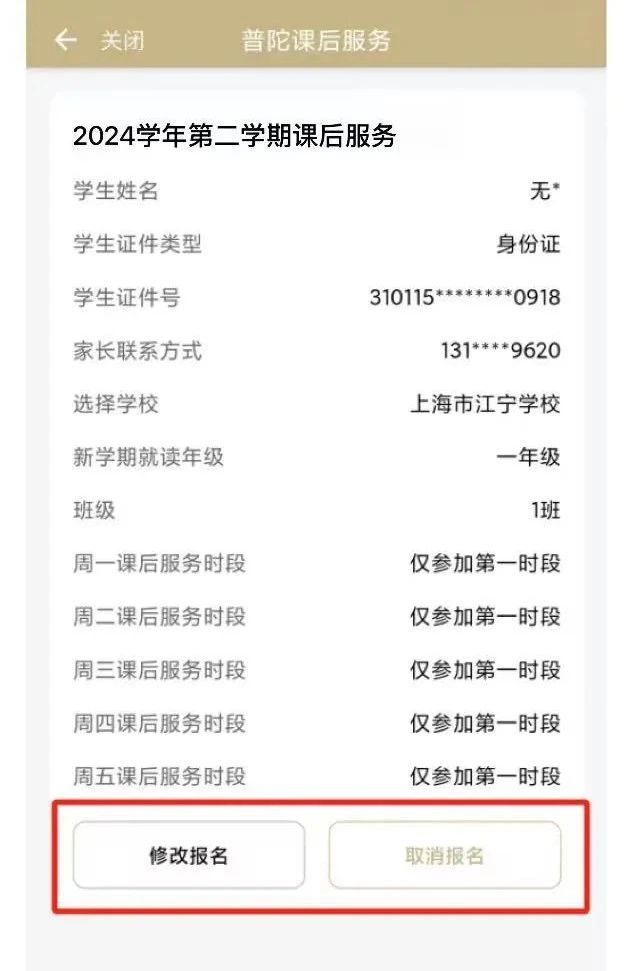 如果家长需要修改或者取消报名信息的,可在报名界面点击我的报名,然后点击查看详情,然后在页面底部,就可以看到修改或者取消报名的按键啦。