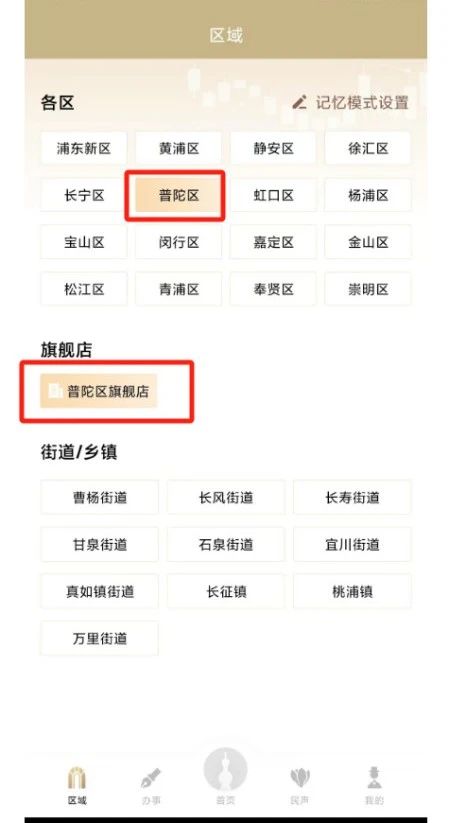 打开“随申办”APP,点击红框位置,进入普陀旗舰店页面。