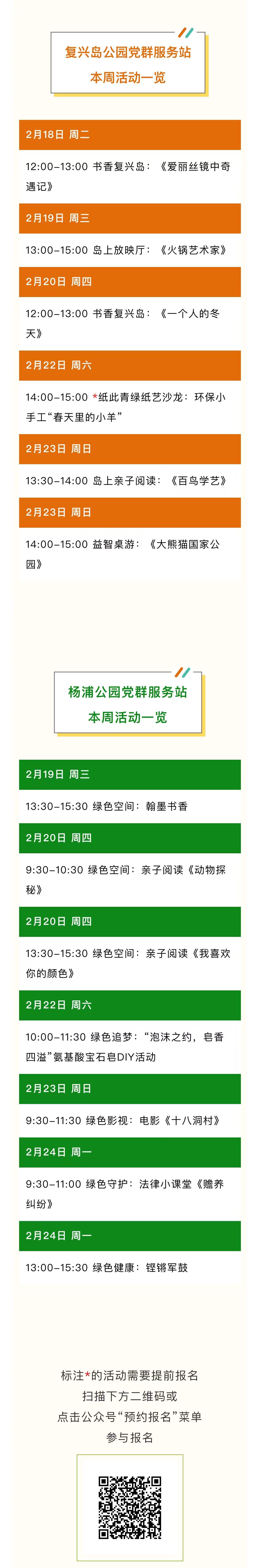 本周活动超级多,想在这里遇见你,欢迎来杨浦两个公园党群服务站参加精彩活动。