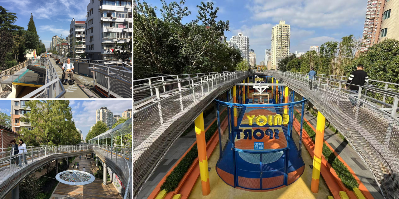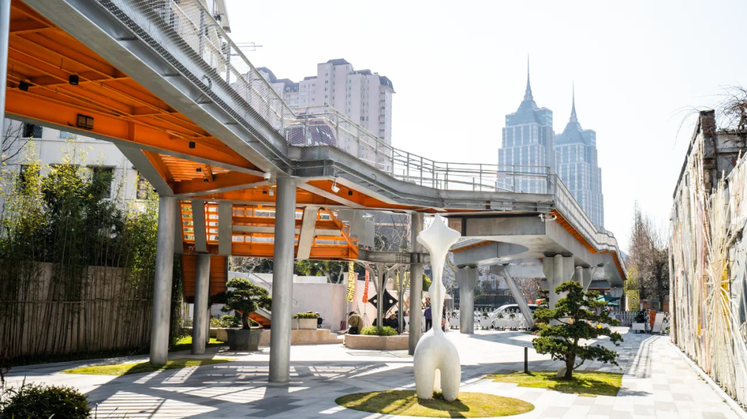 作为上海首座艺术高线公园,这里由废弃铁路焕新而来。公园精心规划了三层空间,包括下沉广场、地面步道和空中廊桥,每层皆具独特景致与体验。